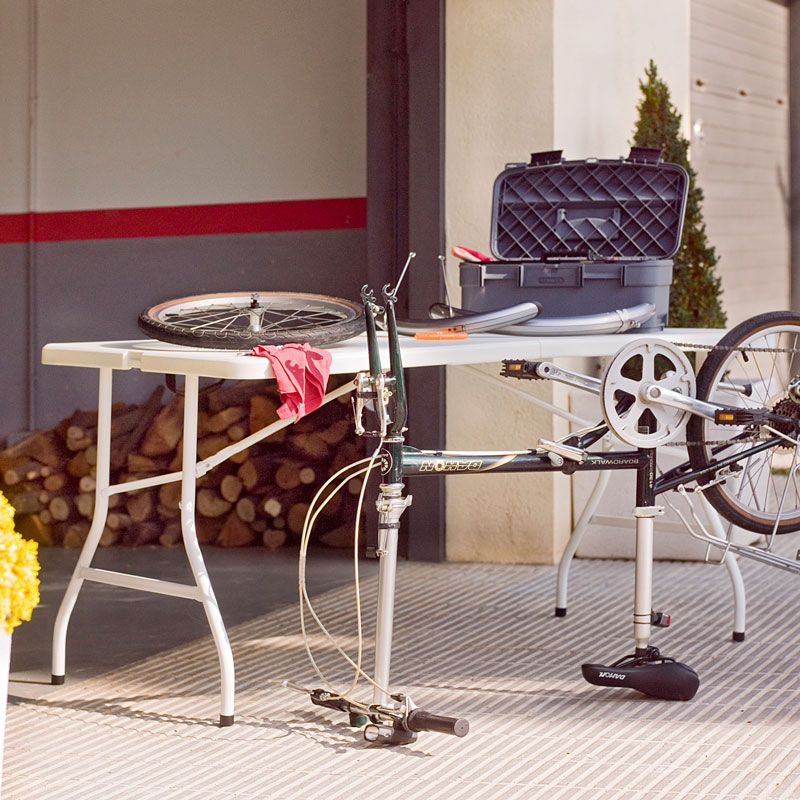 Bordet är både fällbart och vikbart. Det är ett inbyggt UV- och fuktskydd vilket gör bordet lämpligt för både inom- och utomhusbruk.