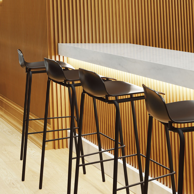 Manacor är en stapelbar barstol med sits i svart eller vit PP plast (polypropylen). Barstolen finns med kromat, svart och inom kort även vitt stativ. Manacor barstol staplar framåt vilket underlättar vid exempelvis städning samt transport med vagn. Stativet som är pulverlackat, alternativt kromat är enkelt att hålla rent med vanligt vatten och trasa. Vid svåra fläckar räcker det med lite diskmedel. Barstol sitsen håller man också ren med trasa och vatten.