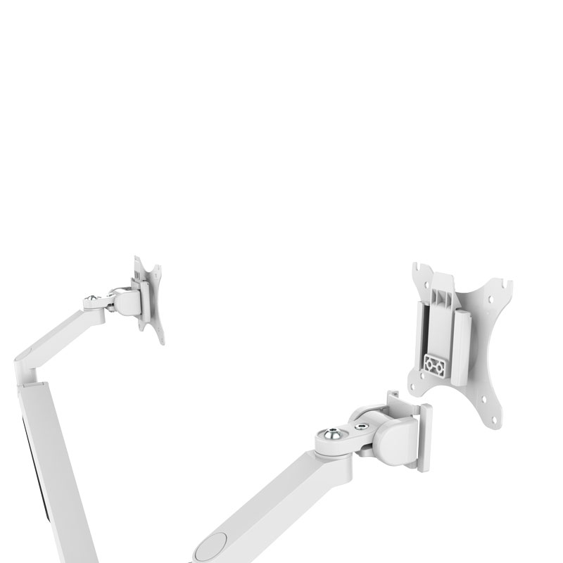 Den vita monitorarmen EASY har 2 sammankopplade armar för att kunna bära 2 displayskärmar med en rek. max. belastning på 2-9 kg. Displayhållarna fungerar bra till skärmar som är 17-32 tum, vilket oftast är dom vanligaste storlekarna i ett vanligt kontor. En någorlunda modern skärm som är 32? väger knappt 4kg